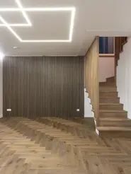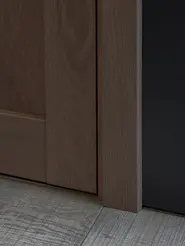 Laget av heltre eik utstråler disse innerdørene tidløs eleganse og luksus. Modellen D1F, kombinert med Original-kvalitet, fremhever eikens naturlige skjønnhet – med rike åremønstre og karakteristisk struktur. Den dype Walnut-finishen gir rommet en følelse av varme og sofistikasjon. For et mer dynamisk uttrykk kan de rene vertikale linjene kompletteres med horisontale paneler som tilfører visuell interesse og bevegelse.